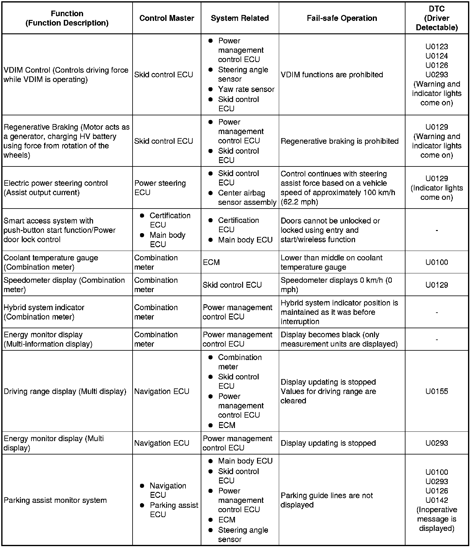 NETWORKING: CAN COMMUNICATION SYSTEM: FAIL-SAFE CHART
