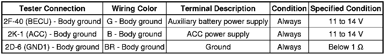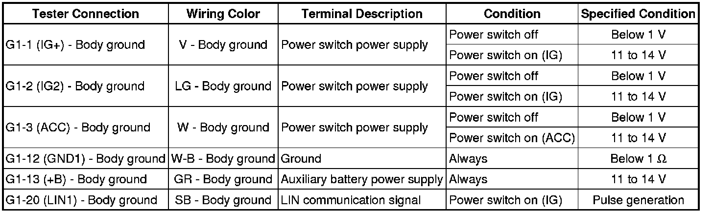 If the result is not as specified, the main body ECU (multiplex network body ECU) may be malfunctioning.