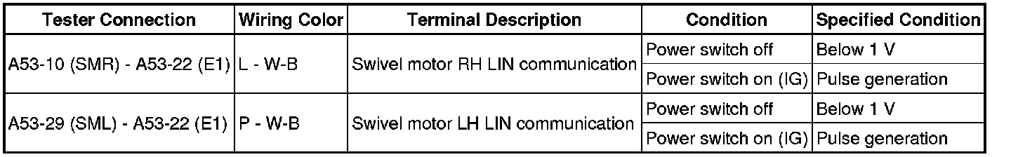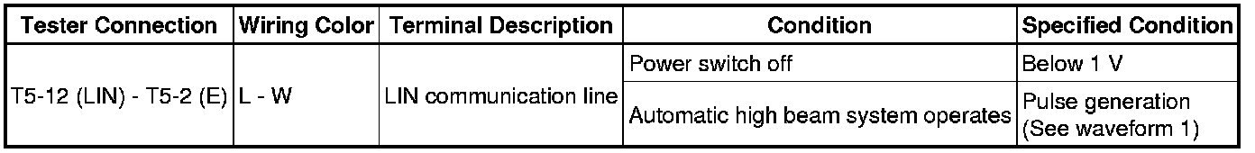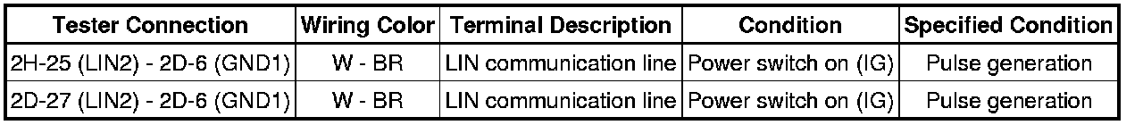 (d) Measure the voltage or check for pulses according to the value(s) in the table below.