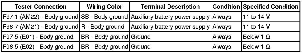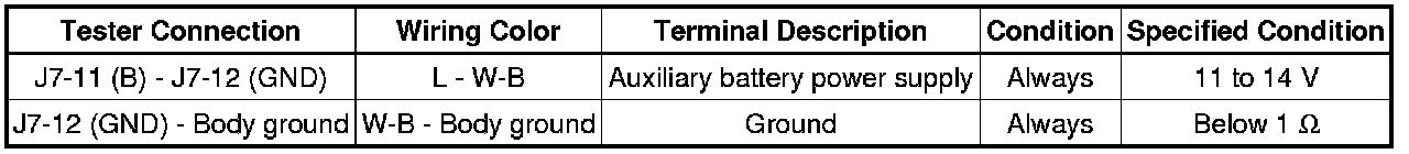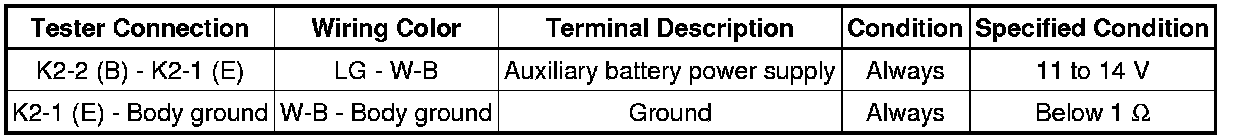 If the result is not as specified, there may be a malfunction in the wire harness.