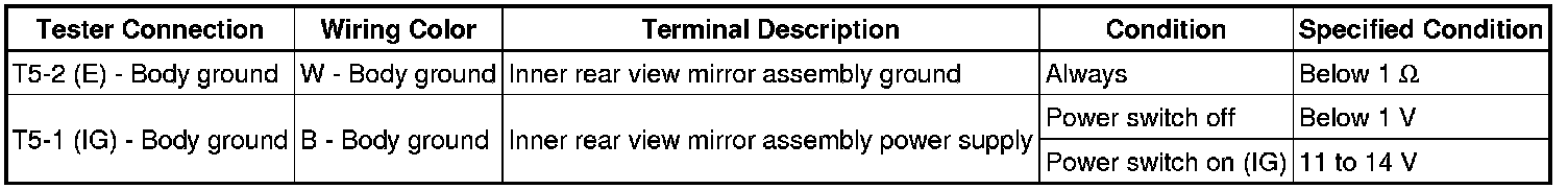 (a) Disconnect the T5 inner rear view mirror assembly connector.