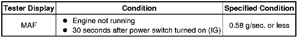 If the result is not as specified, replace the MAF meter.