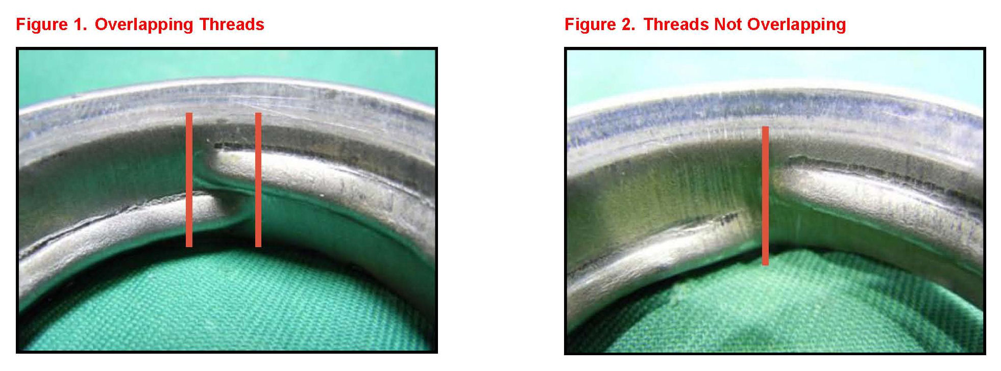 4. Inspect the fuel neck for overlapping threads (see Figures 1 and 2). Are threads overlapping as shown in Figure 1?