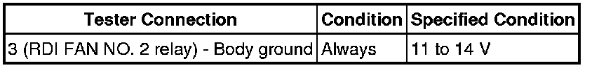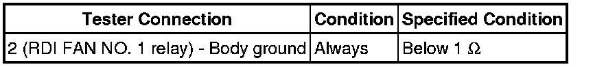 11. CHECK HARNESS AND CONNECTOR (RDI FAN NO. 1 RELAY - BODY GROUND)