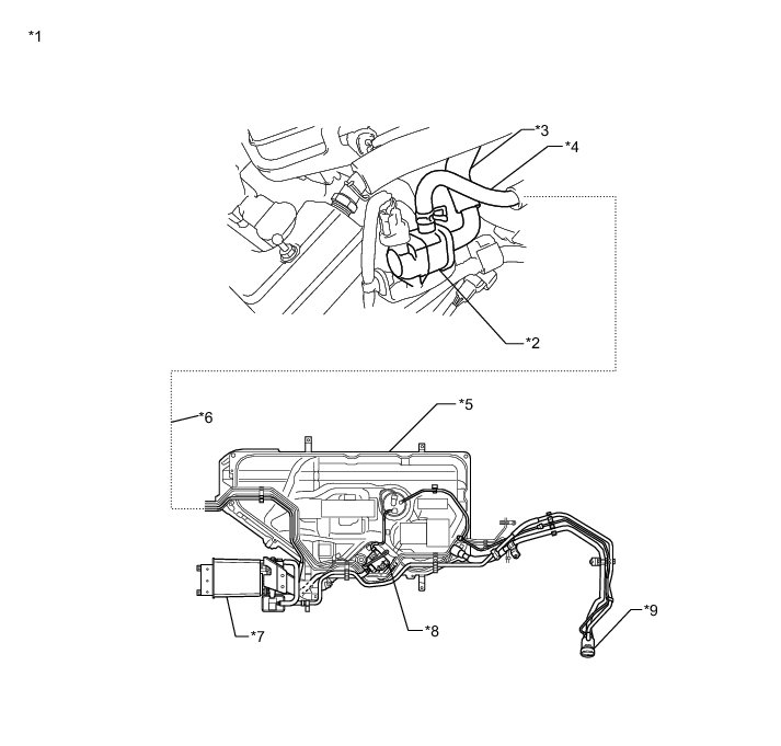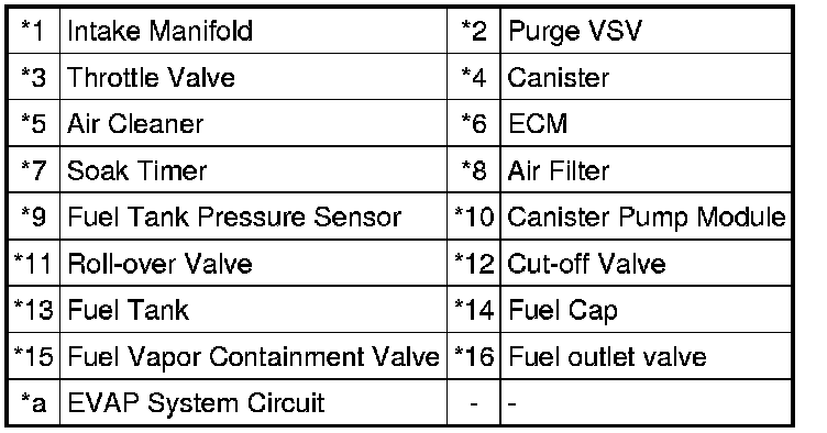 * Do not perform the Evaporative System Check when the fuel tank is more than 90% full because the cut-off valve may be closed and the leak check of the fuel tank is impossible.
