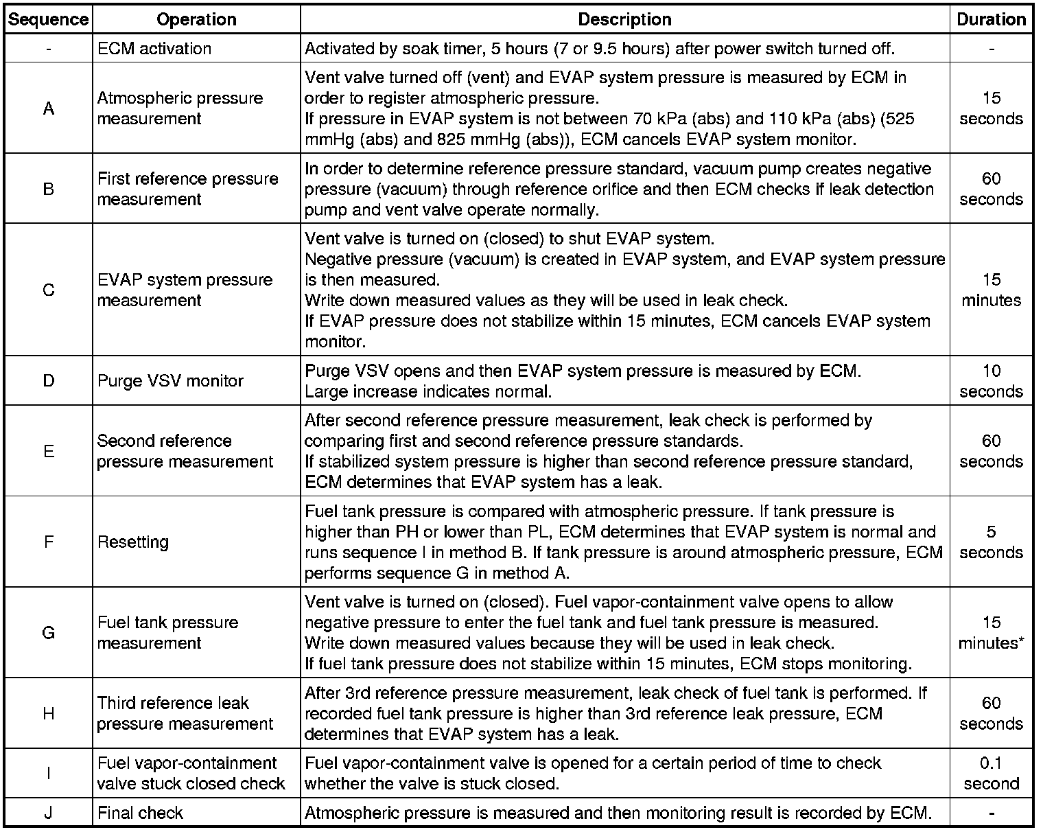 *: If there is only a small amount of fuel in the fuel tank, stabilizing the EVAP pressure takes longer than usual.