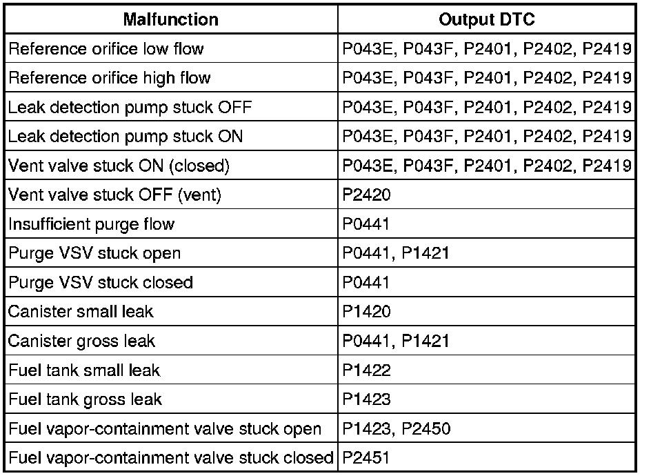 EVAP Related DTCs