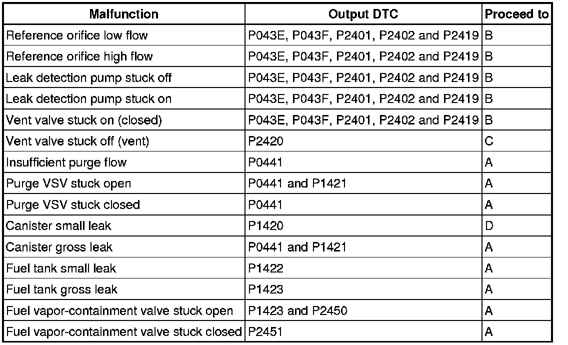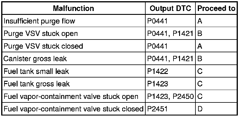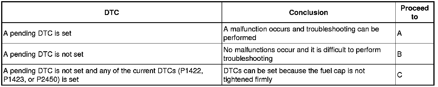 (a) Refer to the table below to determine the next procedure according to the output DTCs.