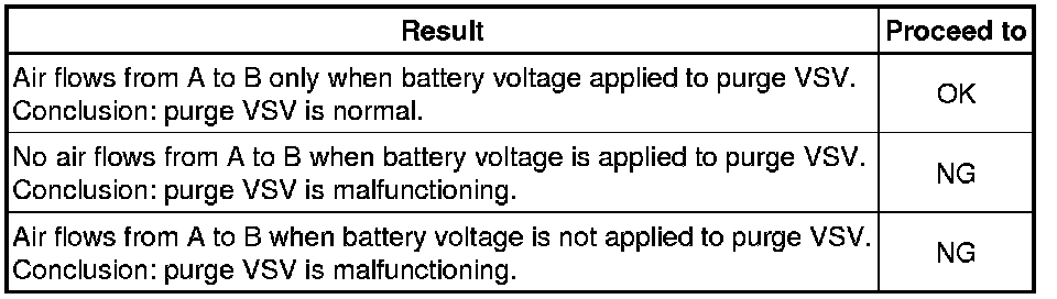 (b) Apply compressed air to the purge VSV, and confirm that no air flows from A to B as shown in the illustration.