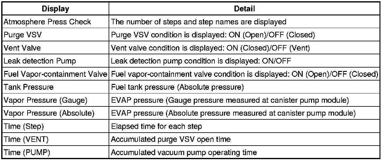 In the manual operation check, the EVAP system can be checked in several steps. Valve operation and pressure in each step can also be checked.