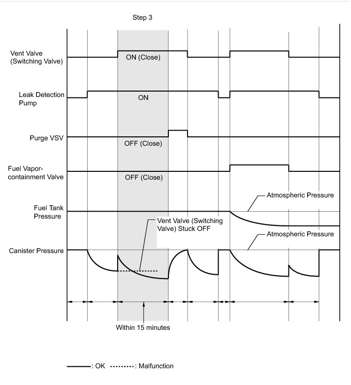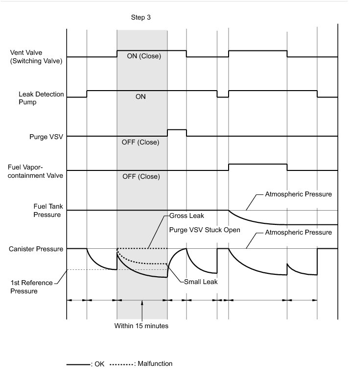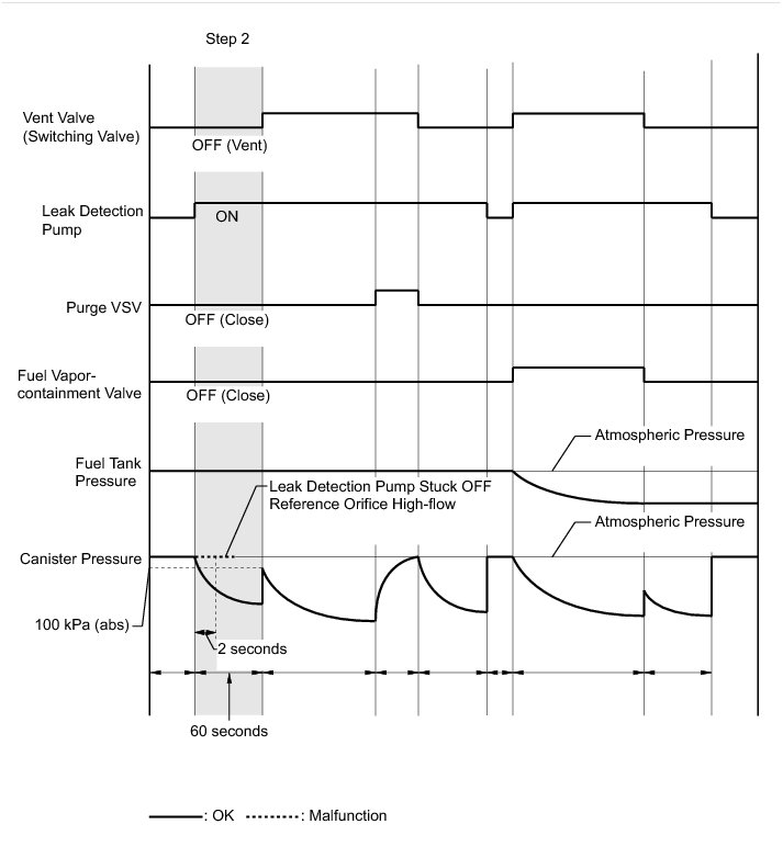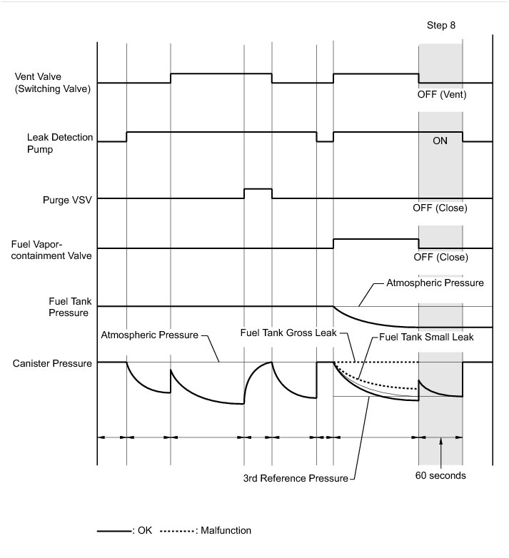 (b) Check the evaporative (EVAP) pressure change in step 3. (step b)