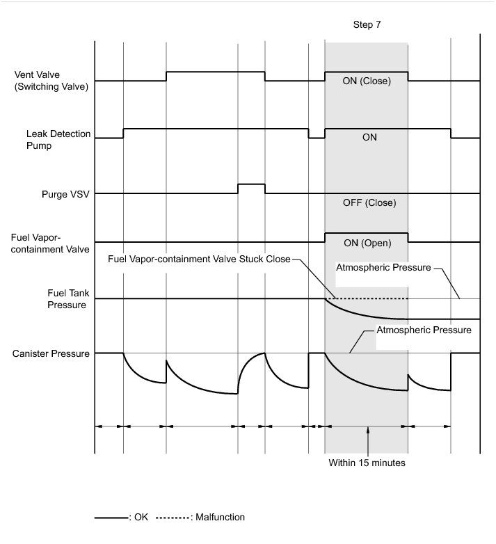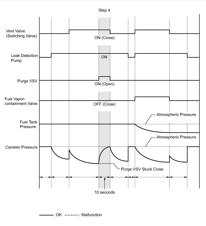(b) Check the evaporative (EVAP) pressure change in step 4. (step b)
