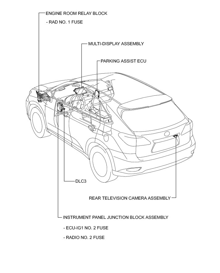 PARK ASSIST / MONITORING: REAR VIEW MONITOR SYSTEM (w/ Side Monitor System): PARTS LOCATION