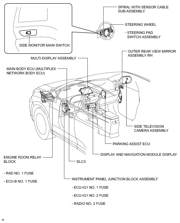 PARK ASSIST / MONITORING: SIDE MONITOR SYSTEM (w/ Parking Assist Monitor System): PARTS LOCATION