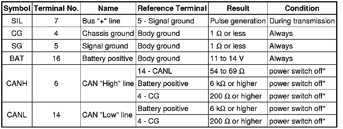 *: Before measuring the resistance, leave the vehicle as is for at least 1 minute and do not operate the power switch, any other switches or the doors.