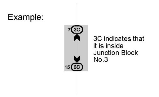 [B] : Indicates a Relay Block. No shading is used and only the Relay Block No. is shown to distinguish it from the J/B
