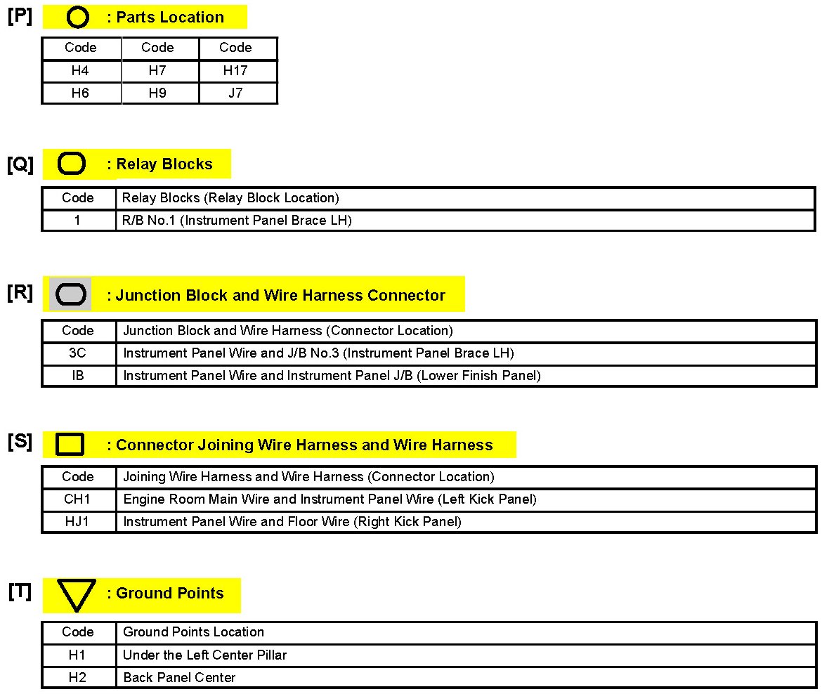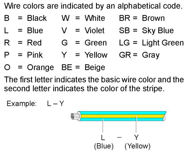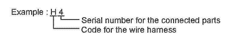 Example : Code "H4" (Light Failure Sensor) The first character of the code indicates the alphabetical code allocated to the wire harness, and the second character indicates the serial number of the parts connected to the wire harness.