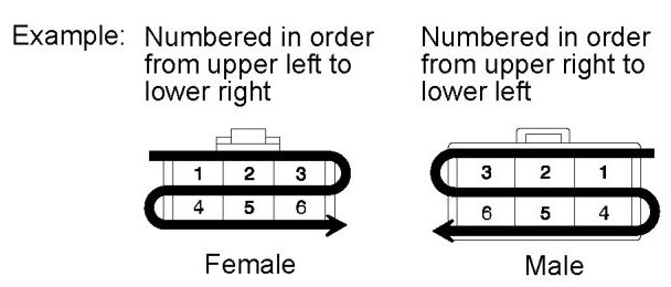 The numbering system is different for female and male connectors.