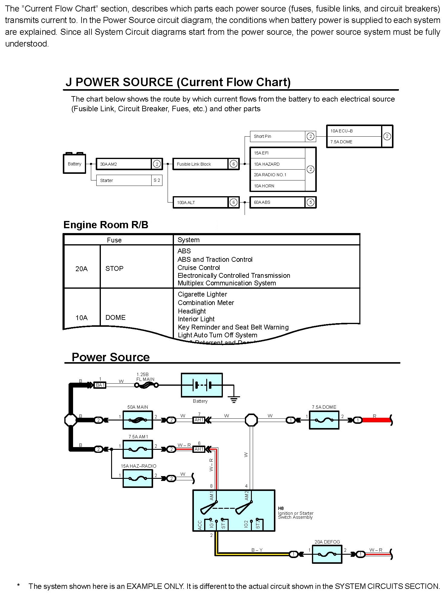 The actual wiring of each system circuit is shown from the point where the power source is received from the battery as far as each ground point. (All circuit diagrams are shown with the switches in the OFF position.)