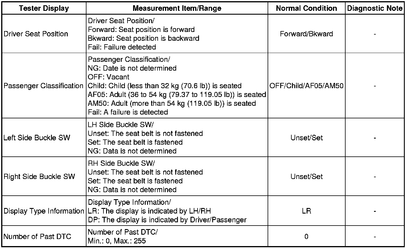 1. DATA LIST FOR CENTER AIRBAG SENSOR ASSEMBLY