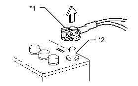 * After the power switch is turned off, the display and navigation module display (HDD navigation system) records various types of memory and settings. As a result, after turning the power switch off, make sure to wait at least 60 seconds before disconnecting the cable from the negative (-) battery terminal.