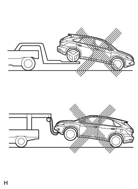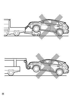 (d) The following towing methods shown below are dangerous and can damage the vehicle, so do not use them.