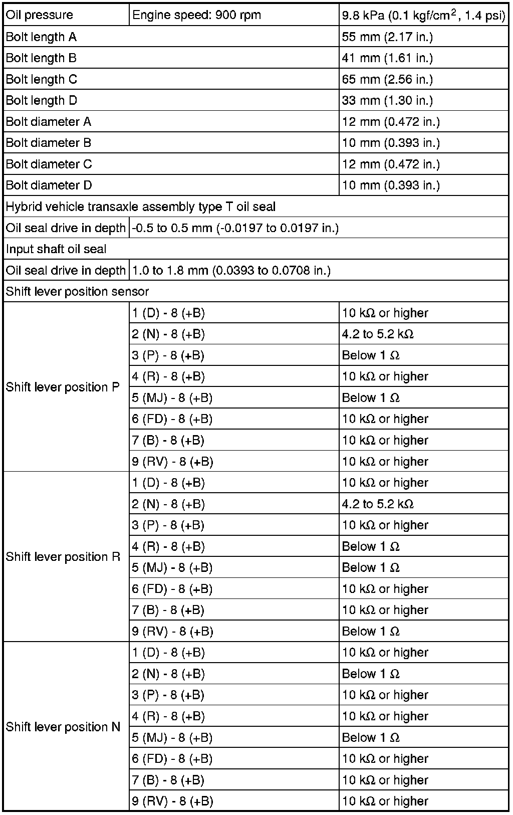 SPECIFICATIONS: P313 HYBRID TRANSMISSION / TRANSAXLE: SERVICE DATA