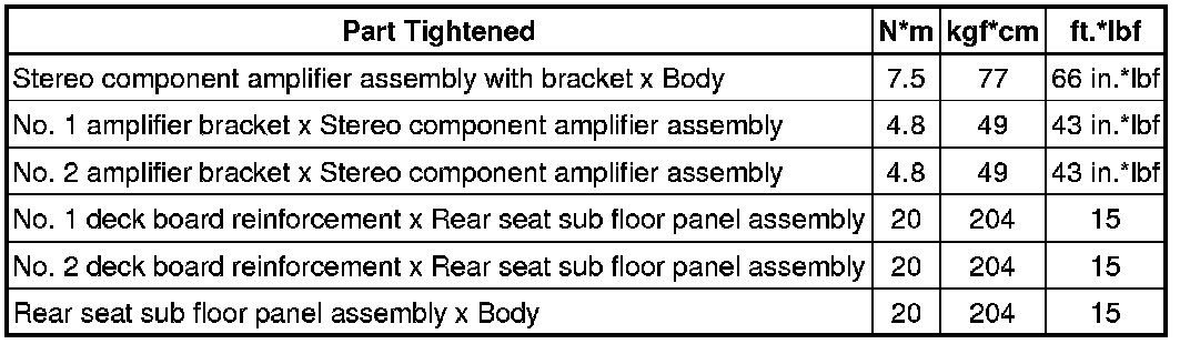 SPECIFICATIONS: AUDIO / VIDEO: TORQUE SPECIFICATIONS