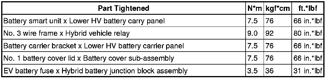 SPECIFICATIONS: HYBRID / BATTERY CONTROL: TORQUE SPECIFICATIONS