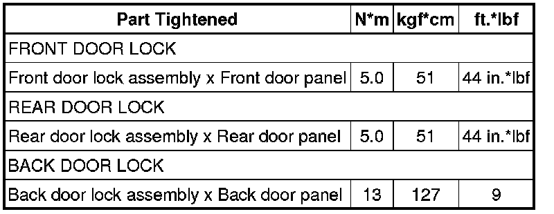 SPECIFICATIONS: DOOR LOCK: TORQUE SPECIFICATIONS
