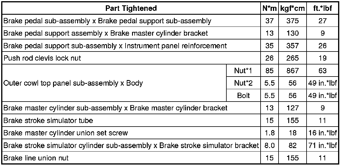 SPECIFICATIONS: BRAKE SYSTEM (OTHER): TORQUE SPECIFICATIONS