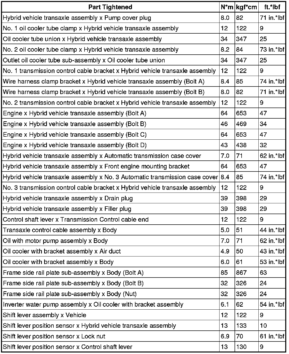 SPECIFICATIONS: P313 HYBRID TRANSMISSION / TRANSAXLE: TORQUE SPECIFICATIONS