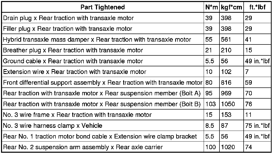 SPECIFICATIONS: Q211 HYBRID TRANSMISSION / TRANSAXLE: TORQUE SPECIFICATIONS