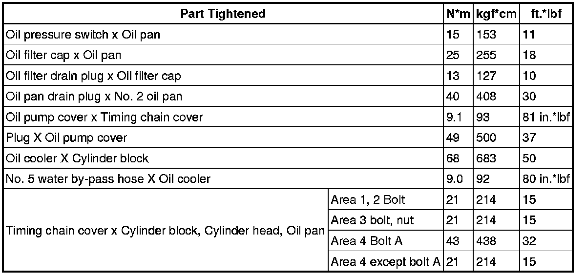 SPECIFICATIONS: 2GR-FXE LUBRICATION: TORQUE SPECIFICATIONS