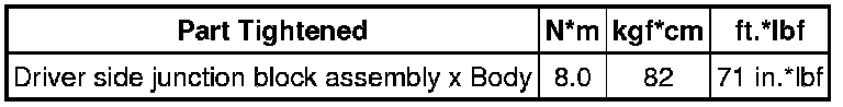 SPECIFICATIONS: POWER DISTRIBUTION: TORQUE SPECIFICATIONS
