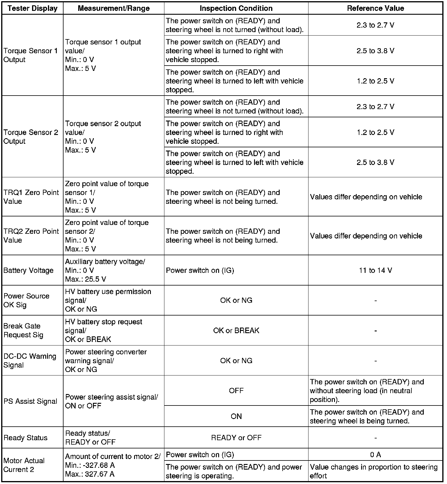 POWER ASSIST SYSTEMS: POWER STEERING SYSTEM: FREEZE FRAME DATA