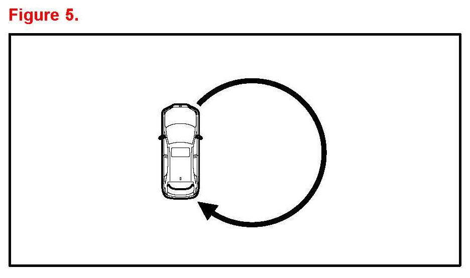 4. Drive the vehicle slowly at 5 mph (8 km/h), or less, in a circle until the direction is displayed. If there is NOT enough space to drive in a circle, drive around the block until the direction is displayed.