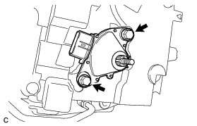 (e) Remove the 2 bolts and pull out the shift lever position sensor.