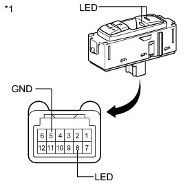 (1) Apply battery voltage to the power window regulator switch assembly and check that the LED illuminates.