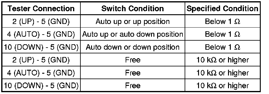 If the result is not as specified, replace the rear power window regulator switch assembly (for rear LH side).