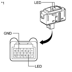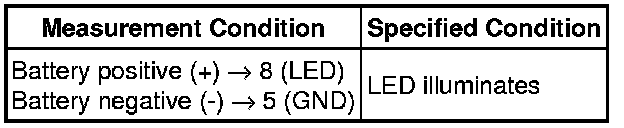 (1) Apply battery voltage to the rear power window regulator switch assembly and check that the LED illuminates.