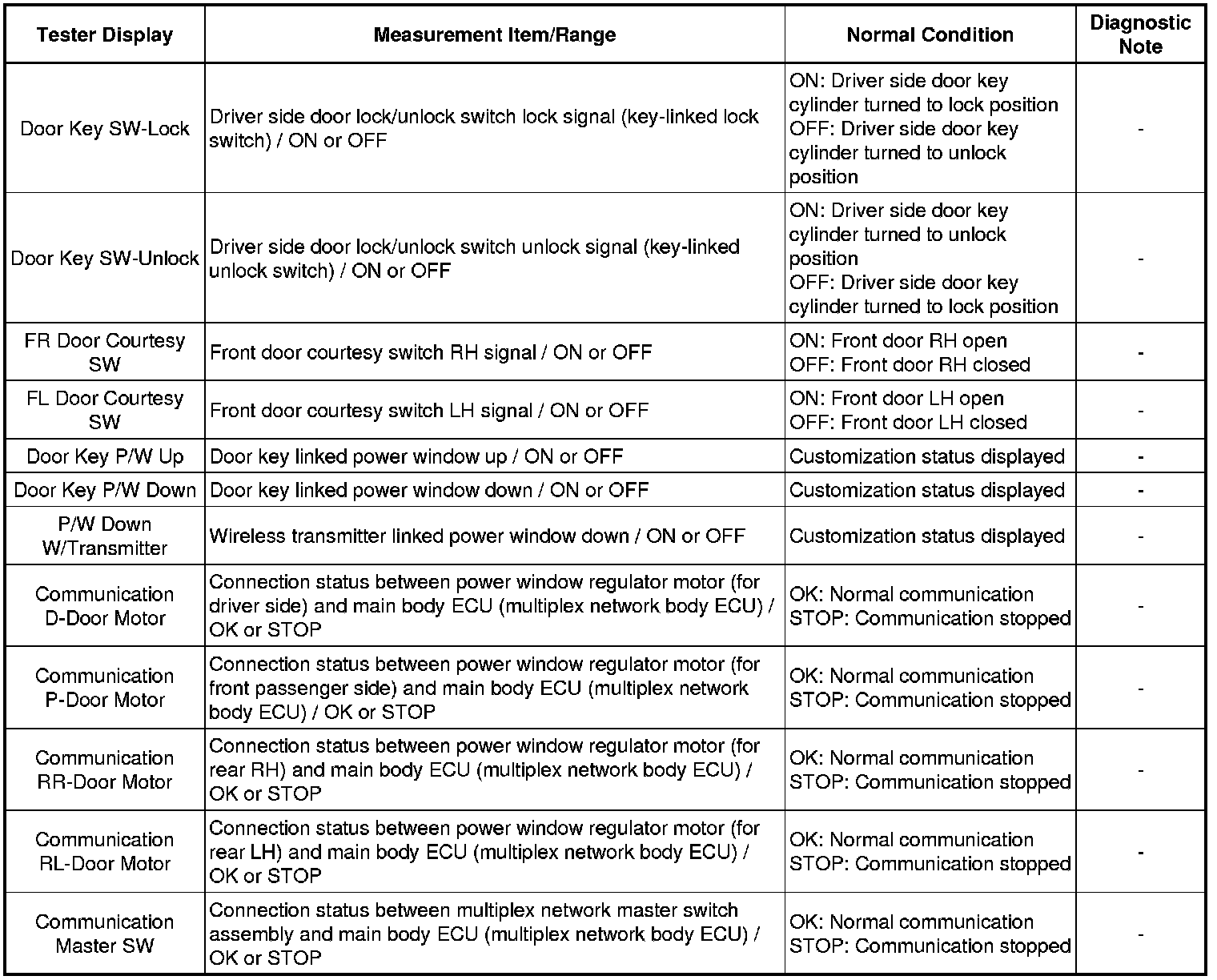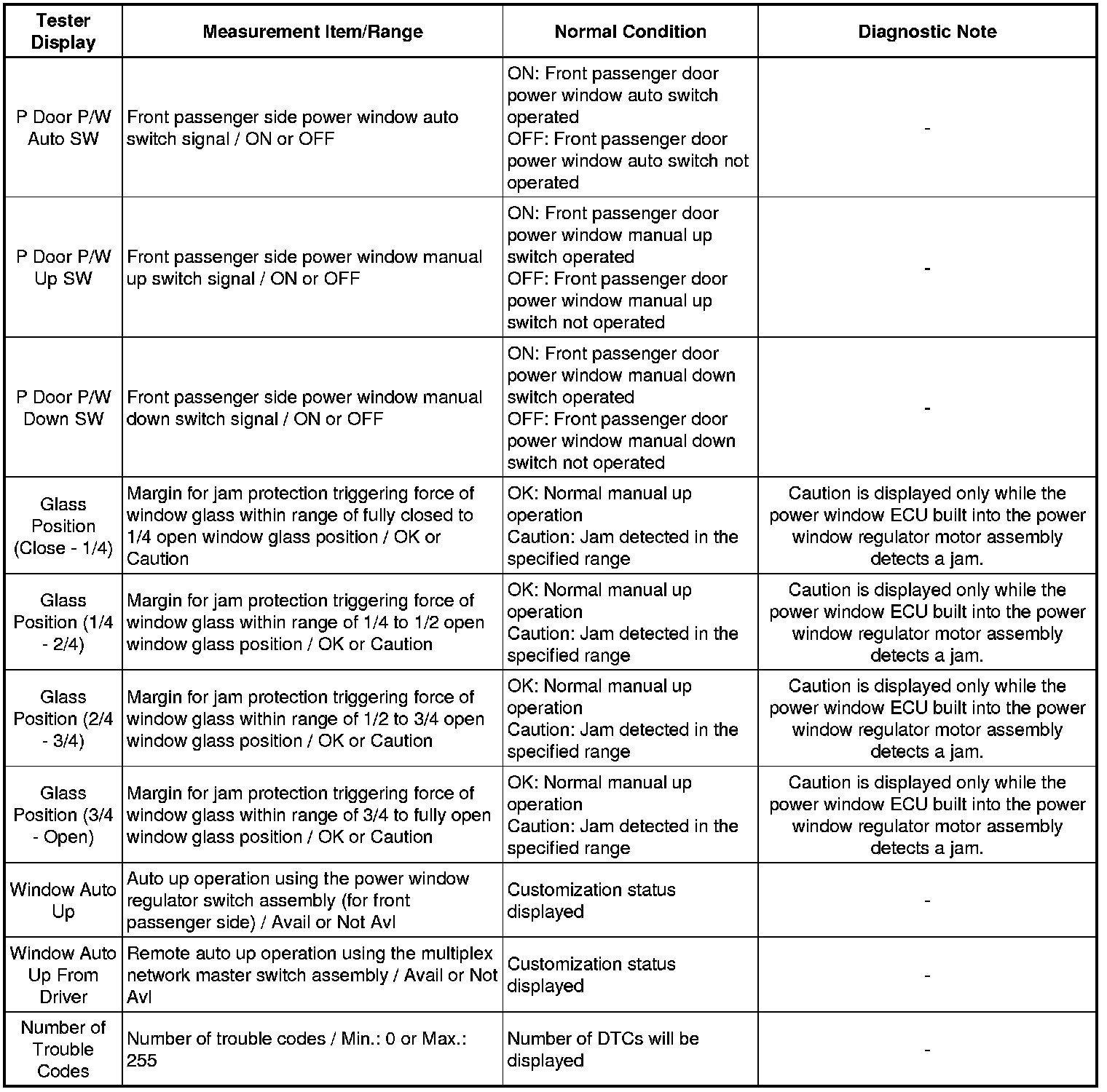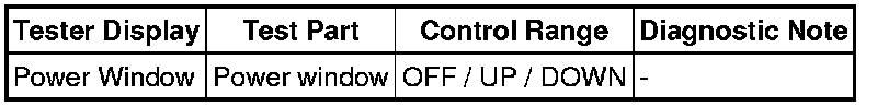WINDOW / GLASS: POWER WINDOW CONTROL SYSTEM: DATA LIST / ACTIVE TEST