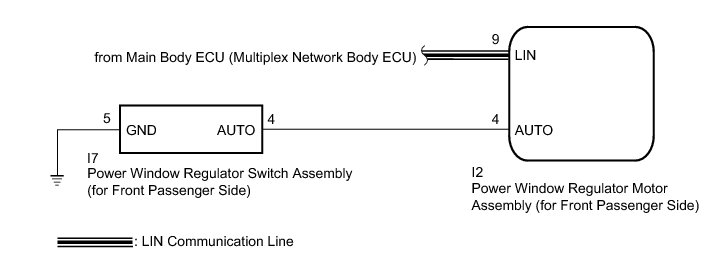 * The power window control system uses a multiplex communication system (LIN communication system). Inspect the communication function by following How to Proceed with Troubleshooting How To Proceed With Troubleshooting. Troubleshoot the power window control system after confirming that the communication system is functioning properly.