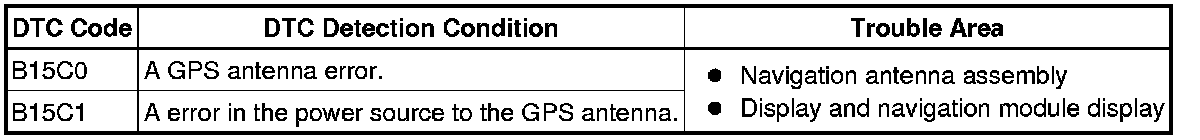 These DTCs are stored when a malfunction occurs in the GPS antenna.