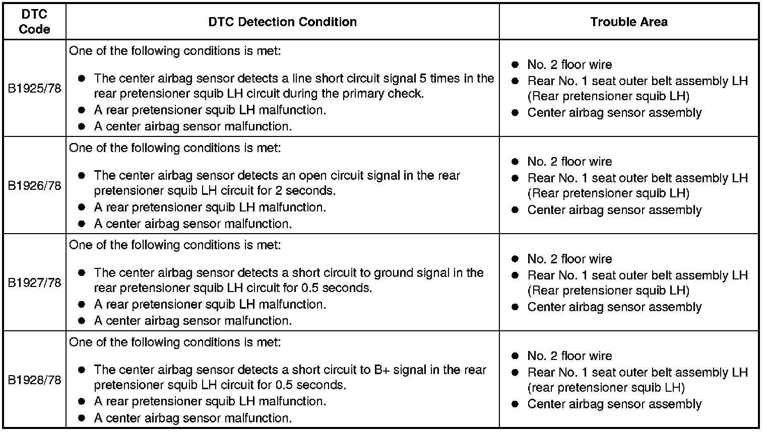 SUPPLEMENTAL RESTRAINT SYSTEMS: AIRBAG SYSTEM: B1925/78-B1928/78: Short in Rear Pretensioner Squib LH Circuit