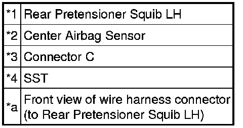 Never connect the tester to the rear No. 1 seat outer belt LH (rear pretensioner squib LH) for measurement, as this may lead to a serious injury due to airbag deployment.