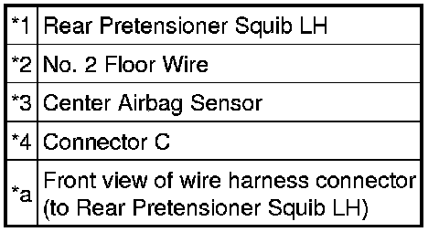 The rear pretensioner squib LH circuit consists of the center airbag sensor and the rear No. 1 seat outer belt LH.