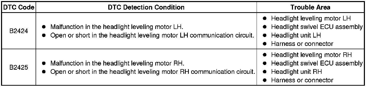 LIGHTING (EXT): LIGHTING SYSTEM: B2424, B2425: Headlight Leveling Motor LH Communication Malfunction