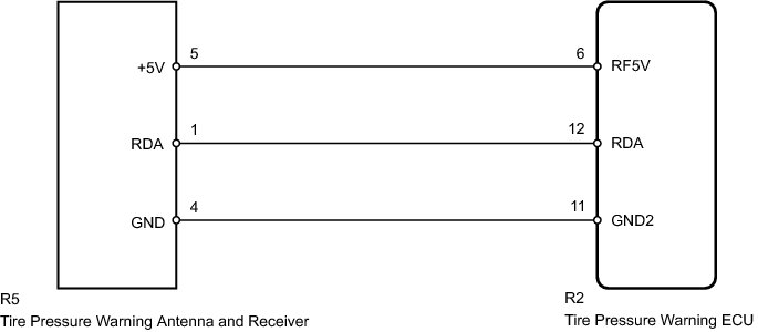 The signals are transmitted to the tire pressure warning antenna and receiver on the body as radio waves and then sent to the tire pressure warning ECU.