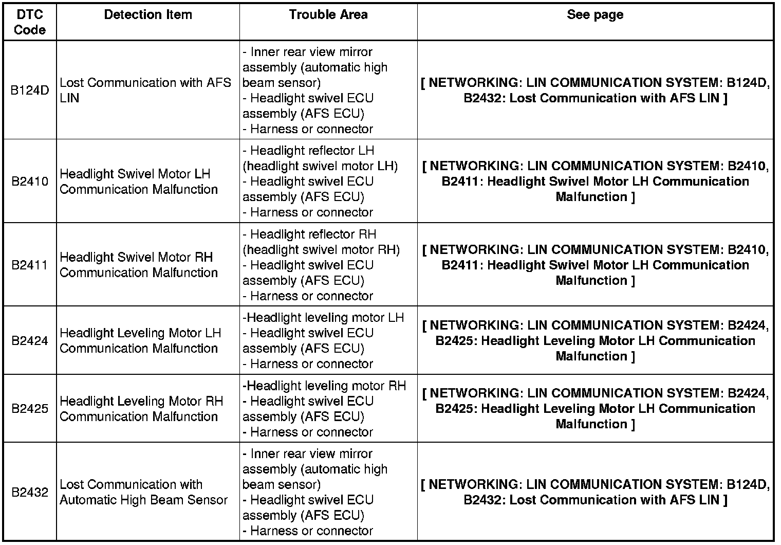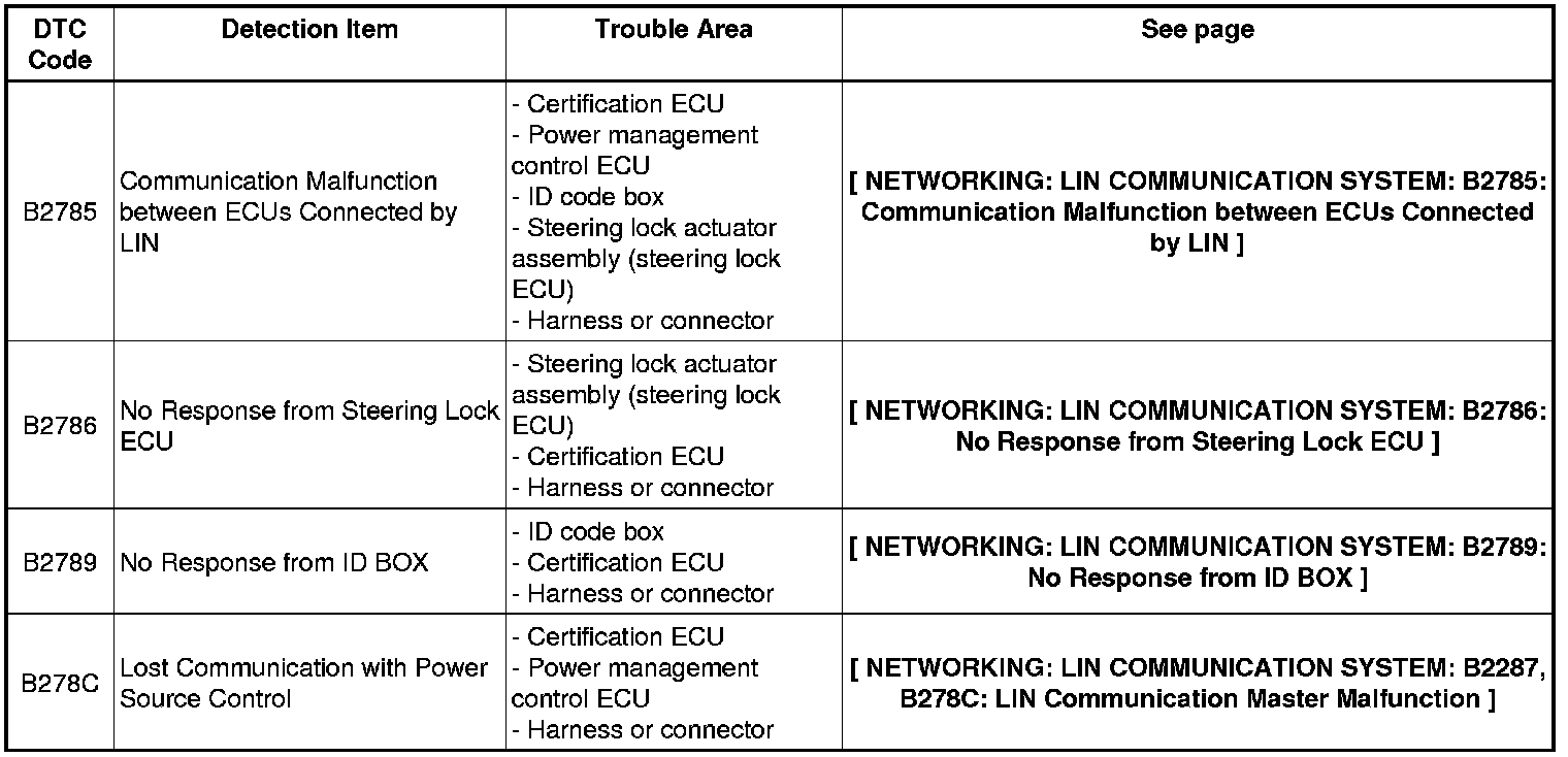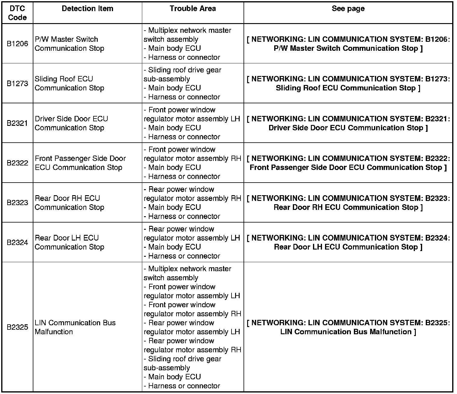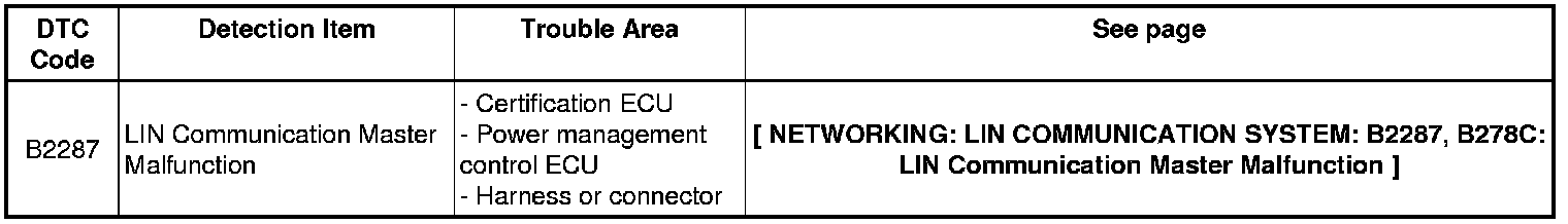 NETWORKING: LIN COMMUNICATION SYSTEM: DIAGNOSTIC TROUBLE CODE CHART